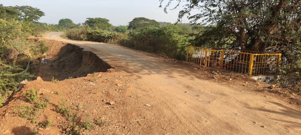 భారీ వర్షాలకు సగం కొట్టుకుపోయిన కట్ట రోడ్డు…